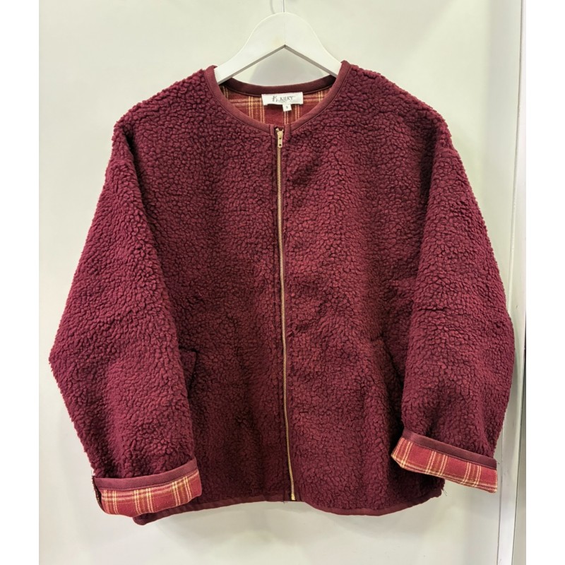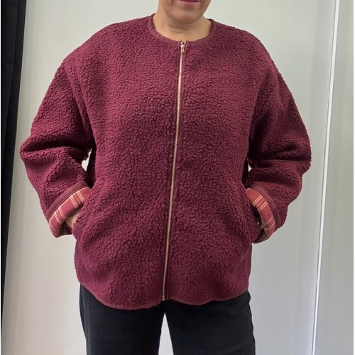 Bomber borrego exterior e interior estampado cuadros, cremallera central y bolsillos laterales. 100% poliéster.
