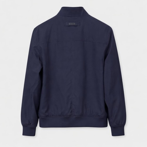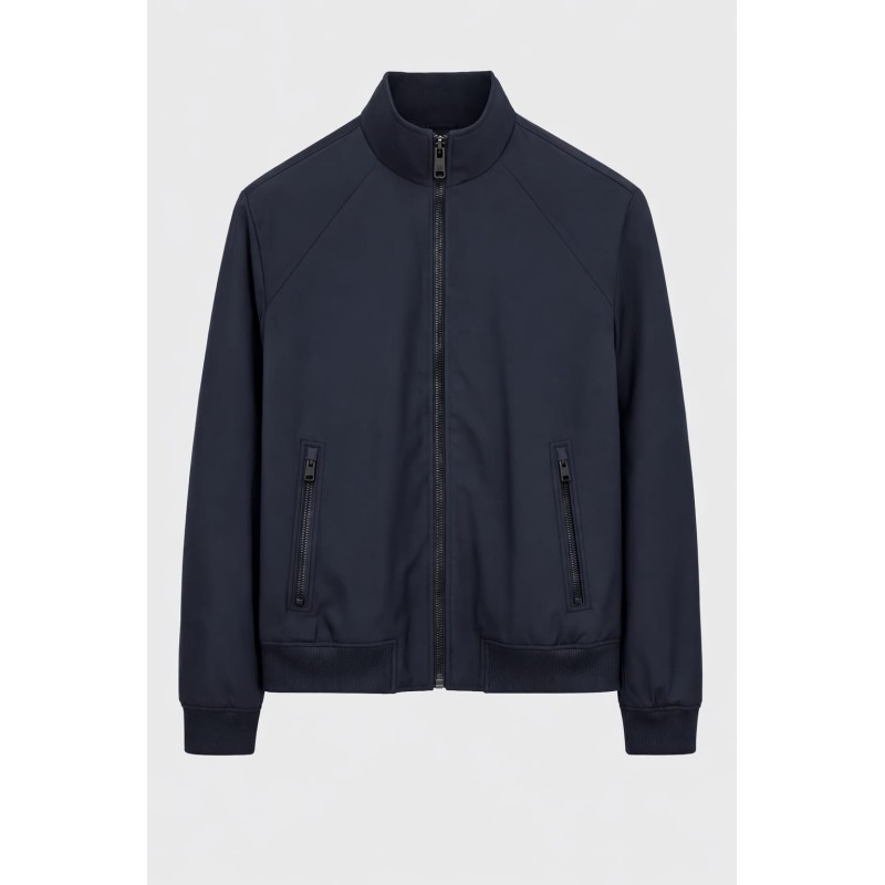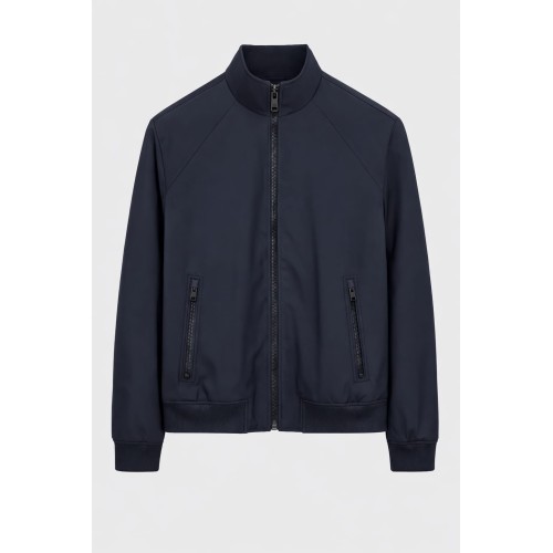 CHAQUETA BOMBER DE ESTILO MODERNO Y MINIMALISTA EN COLOR AZUL MARINO, PERFECTA PARA UN LOOK CASUAL Y ELEGANTE. DISEÑO CON CREMALLERA FRONTAL Y CUELLO MAO QUE APORTA UN TOQUE ACTUAL Y SOFISTICADO. CONFECCIONADA EN TEJIDO LIGERO Y CÓMODO, IDEAL PARA ENTRETIEMPO.
