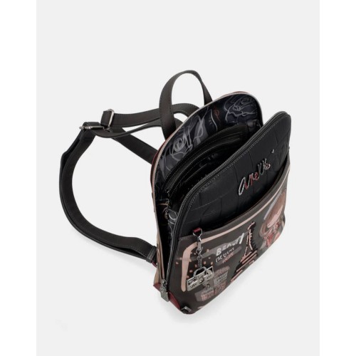 En el interior dos comparti8mentos abiertos para móviles y otro con cremallera.
