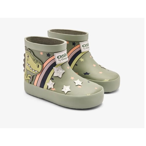 Botas de agua perfectas para los pequeños aventureros que disfrutan jugando bajo la lluvia. Con un divertido diseño en tono kaki, están fabricadas en material impermeable, lo que las convierte en ideales para saltar en los charcos sin preocuparse por mojarse.