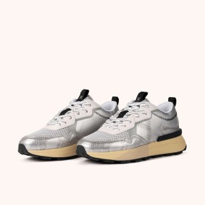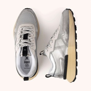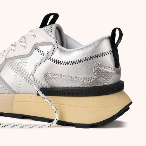La MUNICH HI-MAX 01 ha sido diseñada para ofrecer máximo confort en cada paso, combinando una estética deportiva clásica con acabados contemporáneos de alto impacto. Este modelo destaca por su upper en color plata metalizado con texturas de efecto piel de serpiente y costuras en zigzag, montado sobre una generosa suela de plataforma en tono crema que estiliza la figura sin perder estabilidad. Es el calzado perfecto para elevar un look urbano diario, acudir a reuniones informales con un toque de brillo o caminar con total comodidad durante largas jornadas de turismo por la ciudad gracias a su volumen amortiguado y sujeción mediante cordones técnicos.