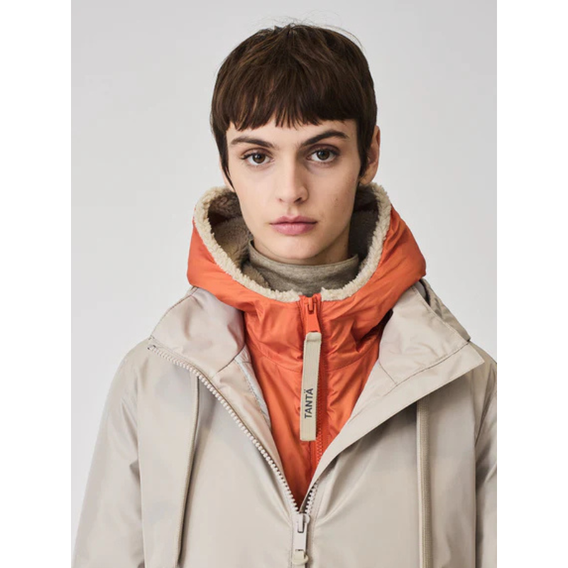 Capucha impermeable naranja modelo Fortuna de la marca Tantä.