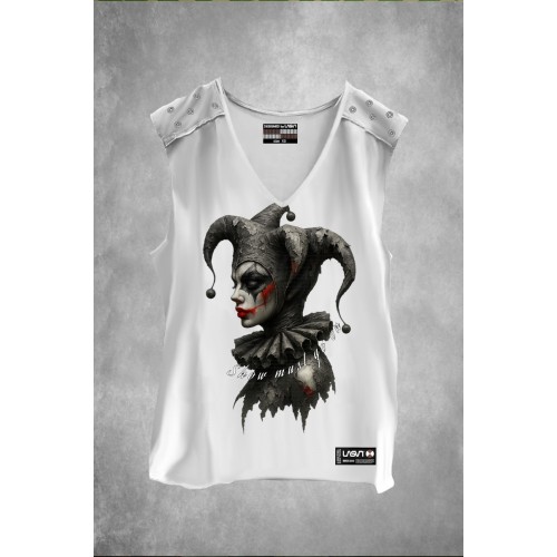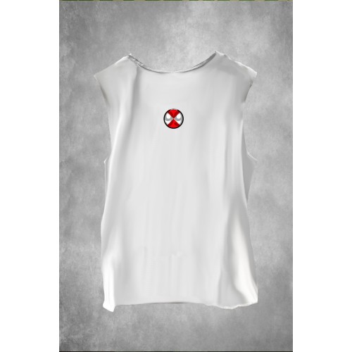 Cuello redondo, sin mangas.