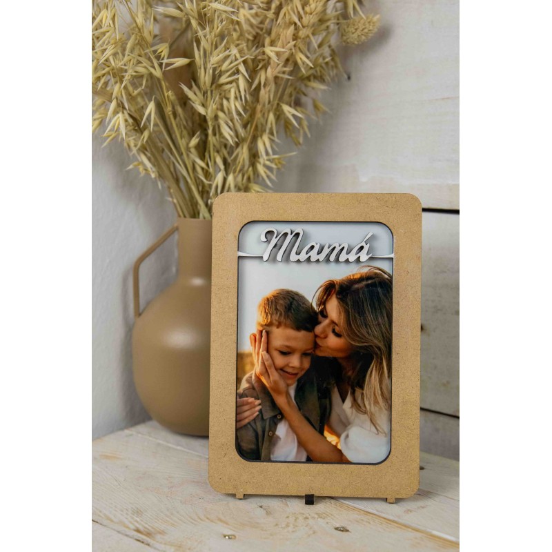 Marco de madera DM en formato vertical para fotografía de 10x15 cm con la palabra “Abuelo” en relieve en la parte superior.