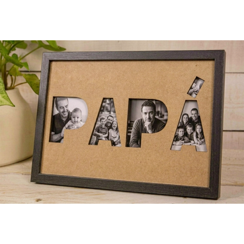 orprende a mamá con un marco personalizado en madera negra de 20x30 cm, diseñado con la palabra “MAMÁ” recortada a láser y personalizada con tus fotos favoritas dentro de cada letra. Un regalo original, emotivo y perfecto para el Día de la Madre, cumpleaños o cualquier ocasión especial. Características: Color negro elegante Medida 20x30 cm Fotos integradas en cada letra Fabricado en madera DM Corte láser de precisión Incluye soporte trasero Regala recuerdos. Regala emoción.