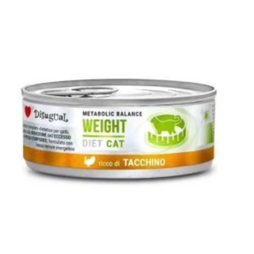 Disugual Diet Cat Weight con Pavo, de Disugual, es un alimento húmedo para gatos con sobrepeso que ayuda a reducir el peso de forma saludable. Elaborado con pavo como proteína magra, bajo en grasa y calorías, y rico en fibra para mayor saciedad, no contiene cereales ni gluten. Su formato en sobre de 85 g ofrece una ración práctica y fresca.