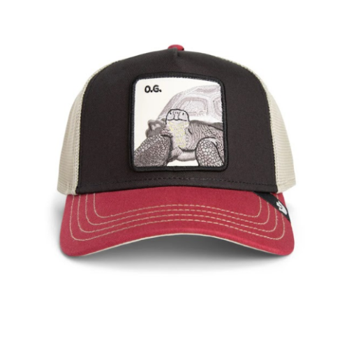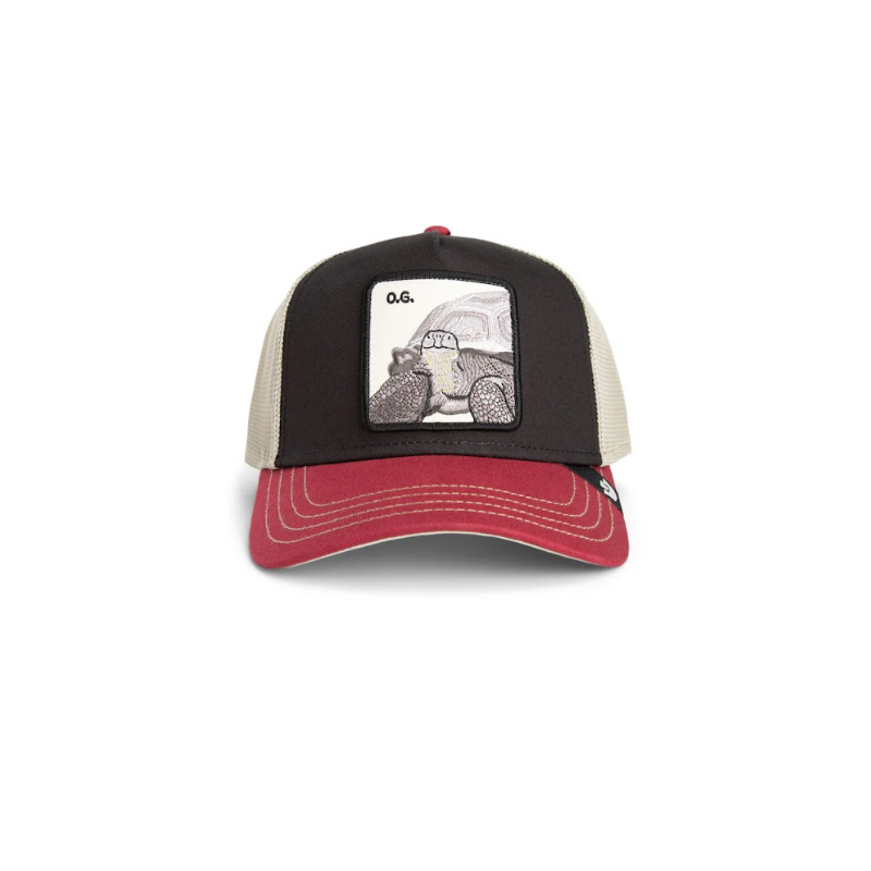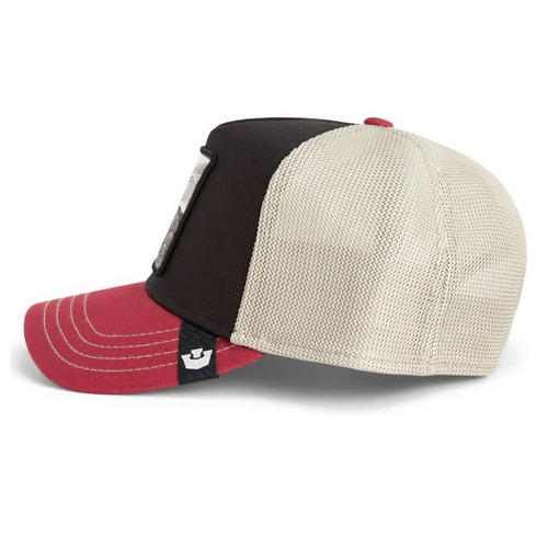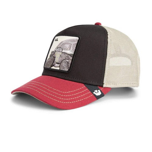 Gorra Goorin Bros modelo Tricolor Tortoise, diseñada en color negro, rojo y beige. Confeccionada en algodón y poliéster con rejilla y ajuste trasero para regular el ancho.