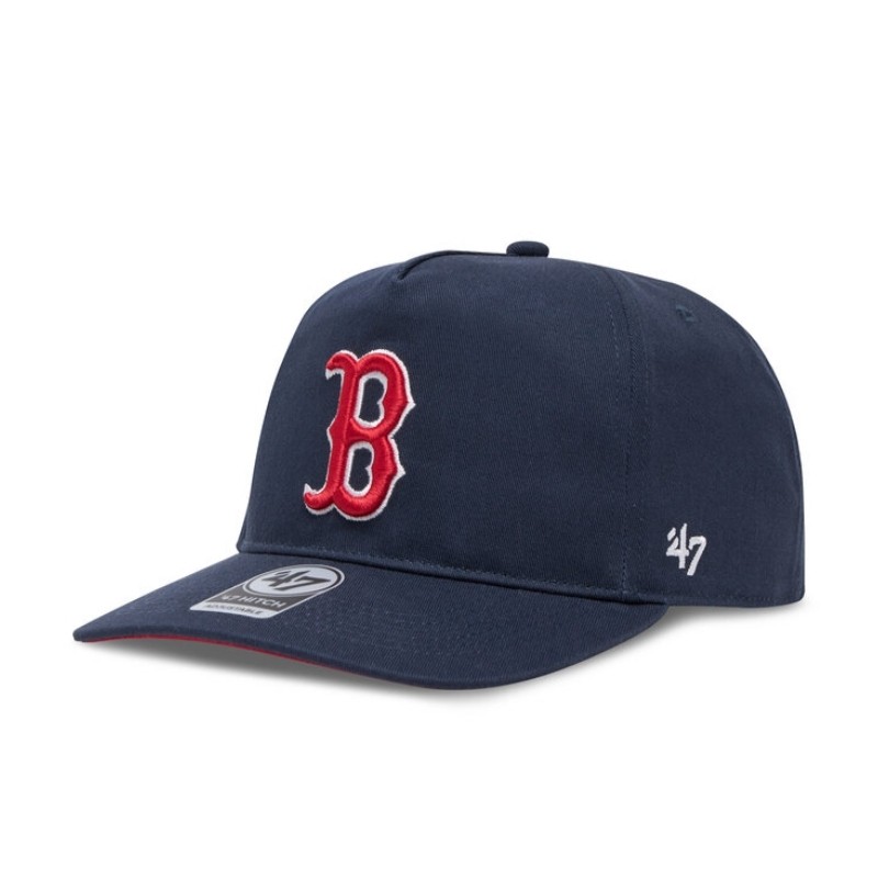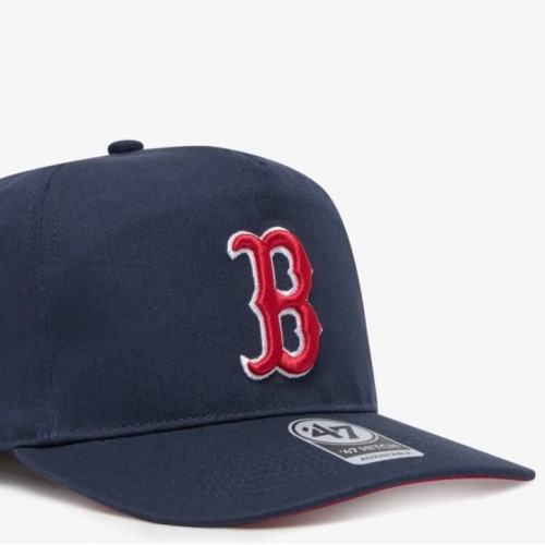 Gorra azul marino. Letra B bordada en rojo y blanco en el frontal. Parte interior de la visera en tela roja. Composición tela : 100% algodón. Por último combina con sudadera roja y deportivos blancos.