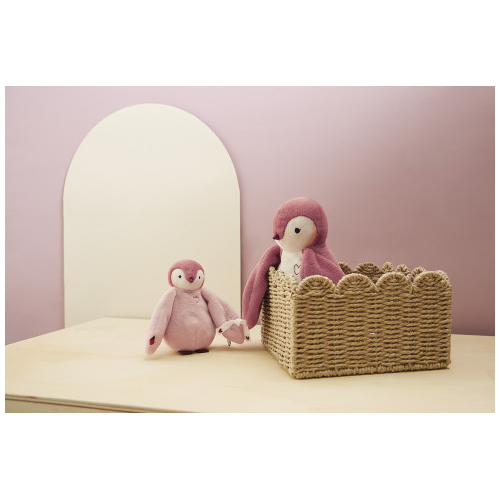 ¡El pingüino grande y el pequeño son (casi) inseparables! Estos pingüinos de peluche para recién nacidos están pensados para reconfortar y calmar al bebé en los momentos de separación. Suaves y mullidos, estos peluches rosas representan a un pingüino y a su cría, así como el vínculo particular que los une. Las alas del más grande son muy agradables al tacto y envuelven al bebé pingüino para cobijarlo en su regazo. Las cintas adornadas con un corazoncito que tienen en los extremos de las alas sirven para sujetar los peluches entre sí y simbolizan la protección y el vínculo afectivo entre un padre o madre y su hijo o hija. Este dúo de peluches Kaloo es un regalo de nacimiento ideal que reconforta al bebé cuando lo pasa mal en ausencia de sus padres. Los corazones y los abrazos están representados para explicar a los más pequeños que el vínculo especial que les une a sus padres es fuerte y no desaparece cuando no están a su lado. Para dar al bebé ganas de abrazarlos y estimular sus sentidos, estos pingüinos de peluche están hechos de distintos materiales (pana y pelo sintético) y tienen bordados y etiquetas que recorrer con los dedos. Es maravilloso tocar su pelo y acariciar su redonda tripa. El pingüinito mide 15 cm y el pingüino grande 25 cm. Los dos llevan un relleno de poliéster reciclado. Este lote de peluches de bebé, presentado en su bonito estuche a juego, es un regalo perfecto para el nacimiento o cualquier otra ocasión: la caja de regalo es personalizable gracias al recuadro reservado para ello y se puede reutilizar para guardar los primeros recuerdos del bebé. Estos achuchables pingüinos de peluche rosas forman parte de nuestra gama Cómplices: una colección de reconfortantes peluches y doudou que expresan amor, plasman el vínculo que une al bebé con sus padres y le acompañan con ternura en sus primeras separaciones.