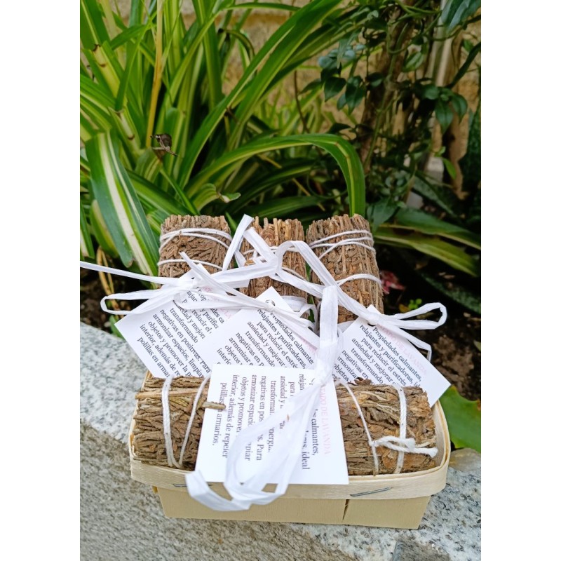 Atado de Romero Mini – Purificación, claridad y protección. Pequeño en tamaño, grande en poder. El Atado de Romero Mini es una poderosa herramienta de limpieza energética en un formato práctico y fácil de usar. Con apenas 10 cm de largo y 2 cm de ancho, este atado compacto es ideal para rituales rápidos, limpiezas puntuales o para llevar contigo a cualquier parte. El romero es una de las plantas más antiguamente utilizadas en rituales de purificación y protección. Su aroma fresco y herbal no solo limpia el ambiente de energías negativas, sino que también aporta claridad mental, refuerza la memoria y levanta el ánimo. ???? Usos y beneficios: Limpieza energética de espacios pequeños, objetos o personas Protección espiritual y elevación de la vibración. Ideal para rituales de apertura, cambio de ciclo o renovación Aporta claridad, concentración y bienestar emocional ????️ Cómo se usa: Enciende ligeramente la punta del atado y deja que el humo fluya. Pasa el humo por el espacio, el objeto o el cuerpo que deseas purificar. Siempre que sea posible, realiza el ritual con intención y en un ambiente ventilado. ???? Medidas: 10 cm de largo x 2 cm de ancho Peso aproximado: entre 8 y 10 gramos ???? Presentación: Atado natural de romero seco, hecho a mano, listo para usar. Ideal como complemento en kits de limpieza, rituales de luna, meditaciones o para llevar en tu bolso como amuleto aromático. ✨ Perfecto para: Espacios reducidos (habitaciones, altares, coches) Personas que prefieren rituales breves y sencillos. Viajeros, terapeutas, practicantes de meditación y reiki