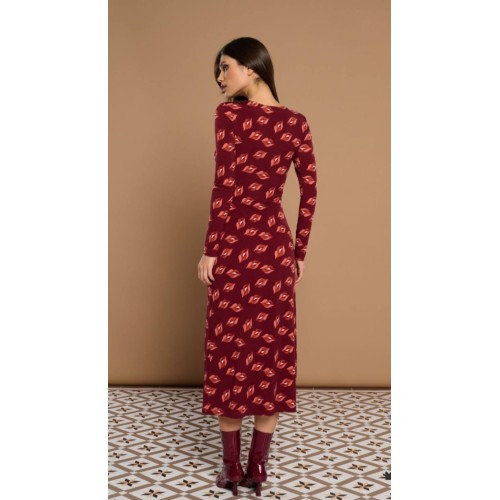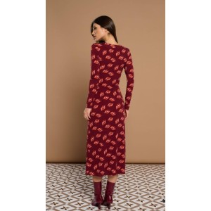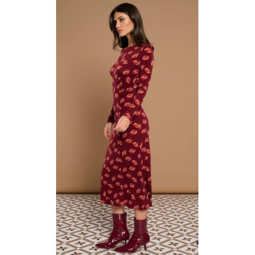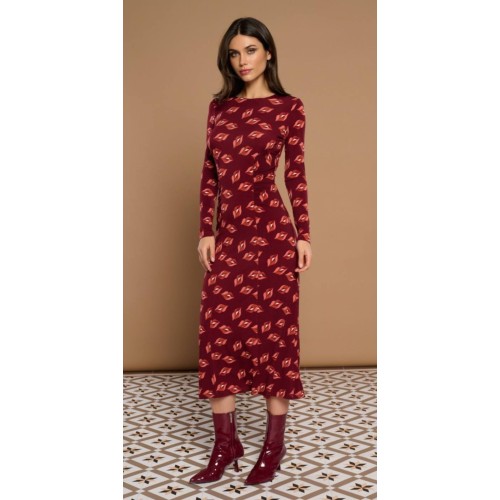 Vestido midi con cuello redondo y manga larga.