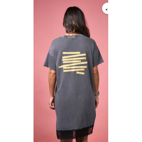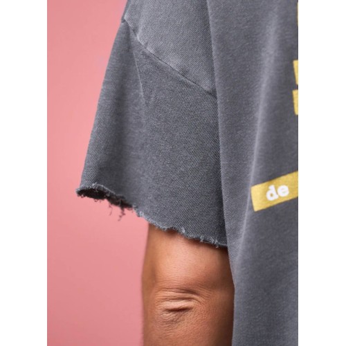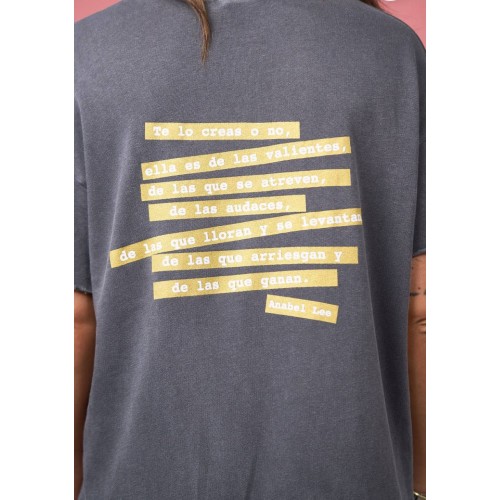 Maxi print delantero y frase en parte de atrás con glitter dorado.