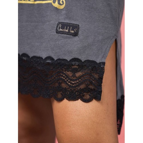 Detalle de puntilla en bajo con aberturas laterales.