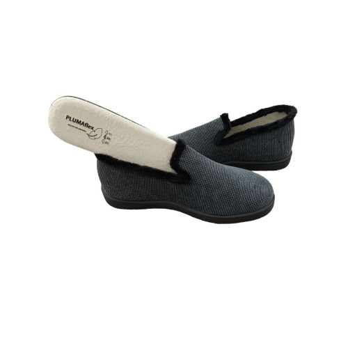 Zapatilla de casa cerrada por detrás con suela antideslizante y plantilla de PLUMAFLEX. Confort y seguridad que se notan