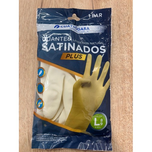 GUANTES SATINADOS PLUS TALLA L, LATEX 100% NATURAL