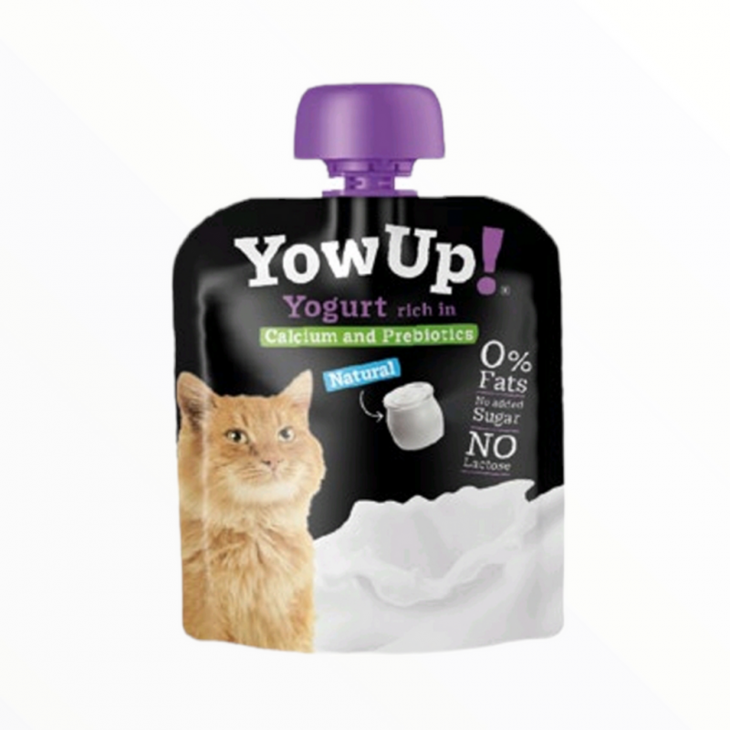 Nuevo YowUp!. Rico y natural. Con el mejor sabor del yogur, rico en calcio y prebióticos y sin azúcares añadidos. Yogur 100% gallego. Combina las cualidades del yogur, formulado especialmente para ellos, en el formato más práctico y cómodo. Una auténtica innovación en el mercado de petfood. Los productos lácteos como el yogur, aportan proteínas de alta calidad, Omega3 y Omega6 y rico en calcio. Además, el calcio ayuda al corazón a latir y mejorar sus músculos y sistema nervioso. El poder natural de los lácteos. Alta palatabilidad textura rica y cremosa. Humedad 88% sabor ganador y perfecto para mezclar. Con prebióticos pensados especialmente para perros y gatos. Recomendado por veterinarios y especialistas.