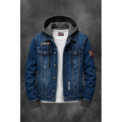 Cazadora denim con bolsillos laterales abiertos y centrales con cierre de botón.