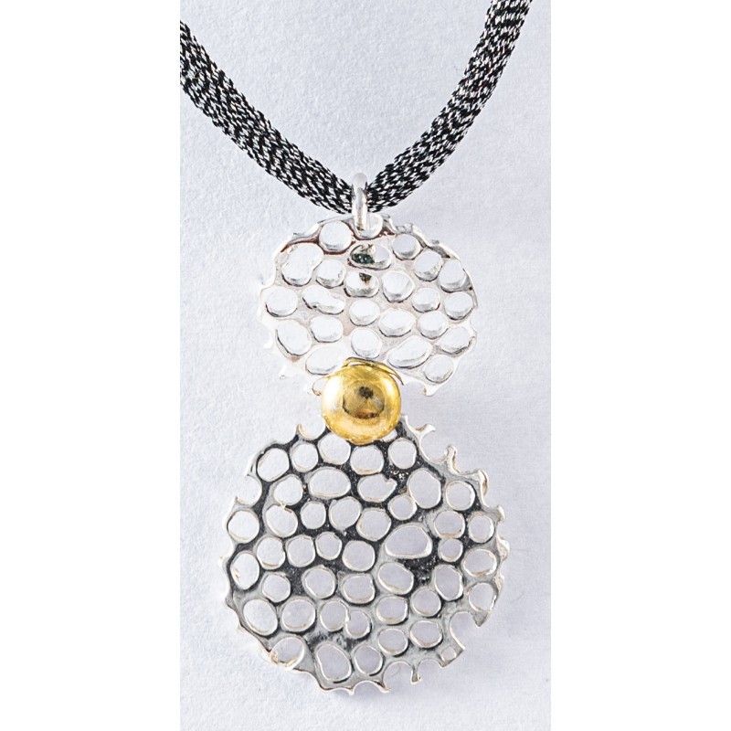 Colgante doble de plata con un detalle en plata dorada, de la artesana Sonia Ares
