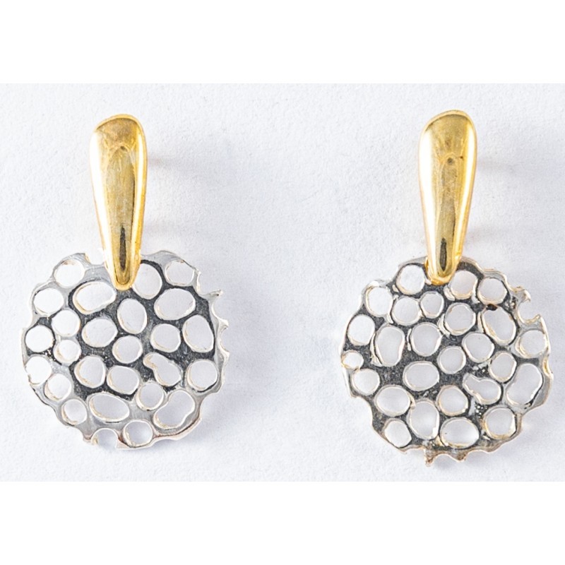 Pendientes pequeños de plata con detalle de plata dorada, de la artesana Sonia Ares