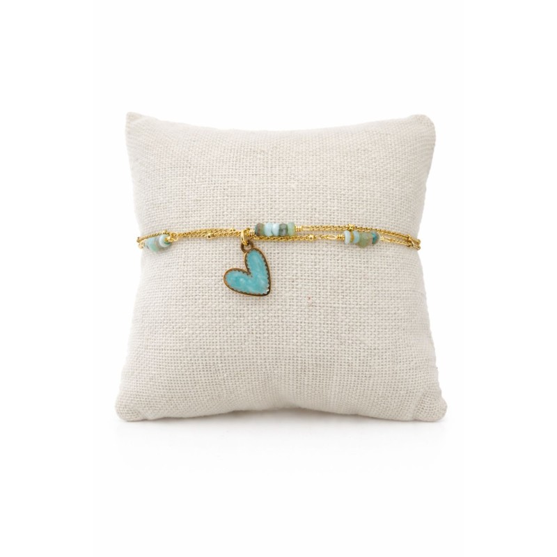PULSERA DORADA DE ACERO CON CORAZÓN TURQUESA