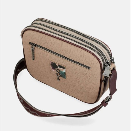 Bolso con tres compartimentos que cierran con cremallera, ideal para tener todo organizado.