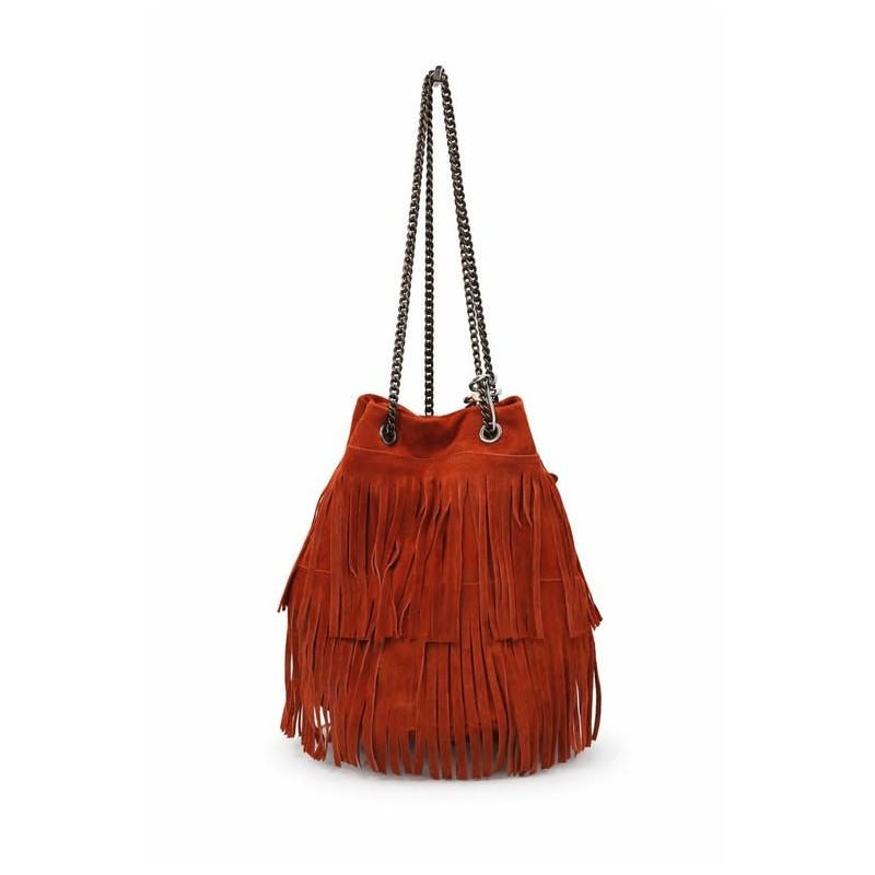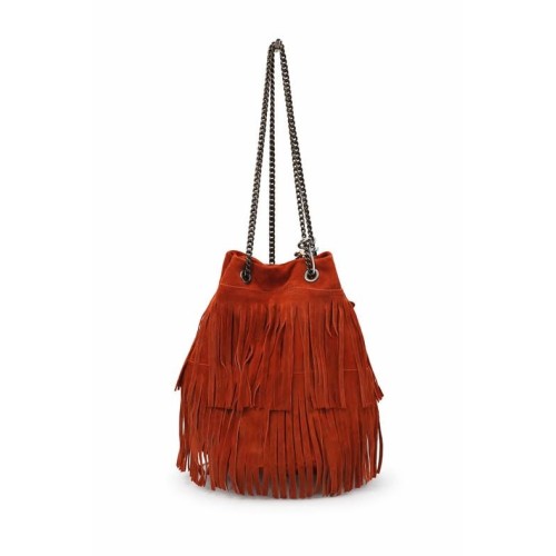 Bolso pequeño tipo saco confeccionado en ante suave color rojo,