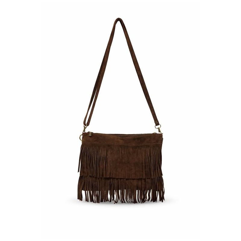Bolso bandolera de ante con asa regulable de quitar y poner.