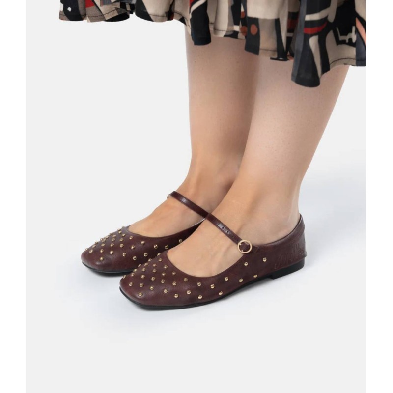 Bailarinas con tachuelas en color dorado.