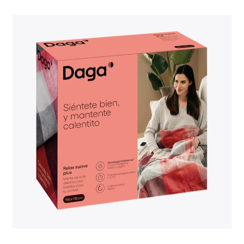 Daga Relax Suave Plus es todo lo que necesitas para olvidarte de que el frío existe. Ponte cómodo y mete los pies y las manos en los grandes bolsillos de cálido felpa tipo sherpa de esta manta térmica. ¡Alucinarás! La tecnología Intellisense® os lo hará más fácil aún, ya que se adapta a vuestra temperatura corporal, a la del entorno y a vuestras necesidades. Disfruta del calor de la manta en la cama, en el sofá viendo la tele, mientras haces el trabajo inteligente o en la terraza cuando todavía hace fresco. 6 temperaturas, multitemporizador y máxima seguridad.