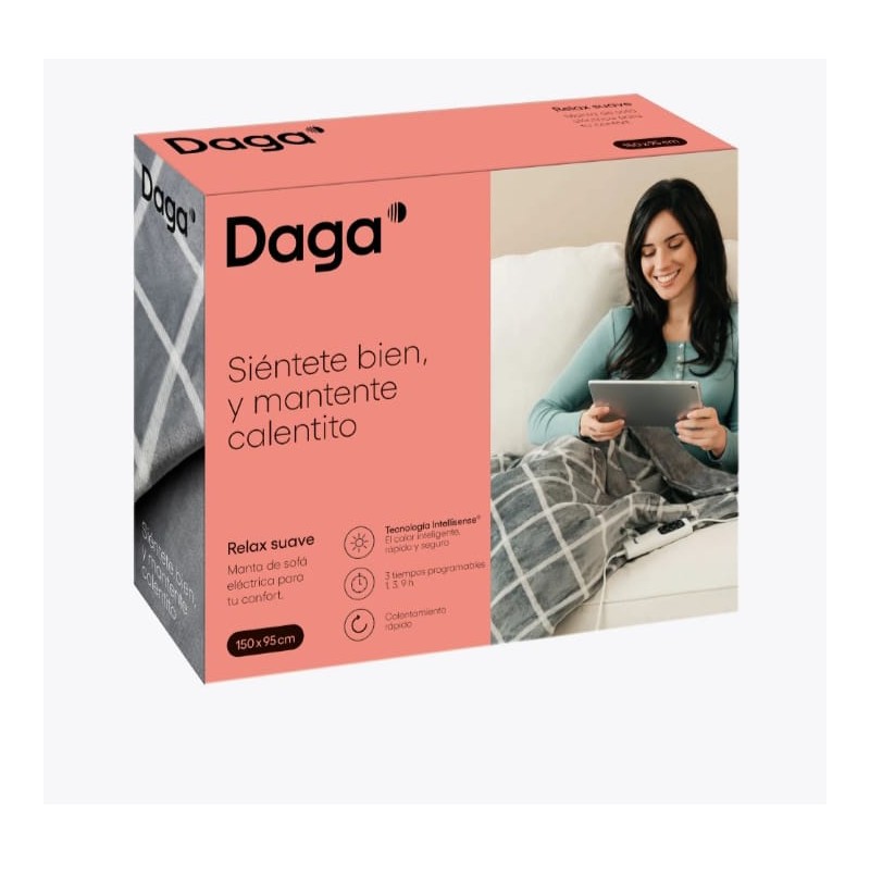 Con la manta térmica Daga Relax Suave tú eliges la temperatura que quieres para disfrutar de un confort extraordinario, en la cama, en el sofá en las frías tardes de invierno o en el exterior cuando llegan los primeros fríos, pero prefieres quedarte fuera. A la suavidad natural del tejido, añade el confort del calor extra que más te guste y te haga sentir bien: lo enciendes, seleccionas la temperatura y con la se tecnología Intellisense® calienta enseguida, ahorrando en la factura.