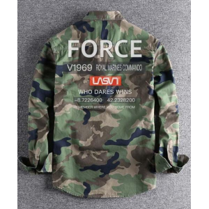 Sobrecamisa de Hombre Lasal piliot regular fit con estampado de camuflaje. Cierre frontal abotonado. Parches personalizados bordados en la propia prenda. Bolsillos en el pechocon solapa y cierre de botón.. Estampado dorsal de gran tamaño. Com`posición: 100% Algodón.
