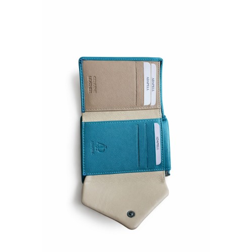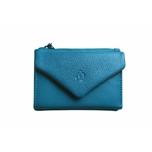Billetero monedero compacto en tono azul turquesa.