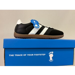 Deportivo Barefoot muy cómodo en negro con rayado en blanco y cordón .