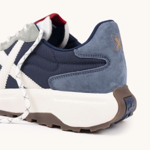 Diseñadas para la autenticidad y la expresión personal, BABEL refleja la energía vibrante de la cultura juvenil a través de un diseño atrevido con detalles audaces que te permitirán recorrer las calles con total confianza. Este modelo presenta una combinación de materiales premium que mezcla tejido técnico y ante en tonos azul marino y gris, destacando por su icónica logomarca en blanco y una lengüeta con detalles en rojo que rompe la sobriedad del conjunto. Es el calzado perfecto para quienes buscan destacar en eventos creativos o en su rutina diaria, aportando una estética contemporánea y una pisada confortable gracias a su suela de gran volumen y agarre optimizado.