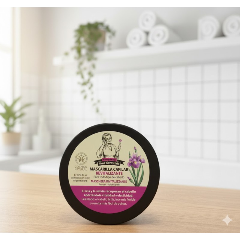 ¿CABELLO APAGADO Y SIN VIDA? DESPIÉRTALO CON NUESTRA MASCARILLA CAPILAR REVITALIZANTE DE OMA GERTRUDE. SU PODEROSA FÓRMULA DE 300ML, RICA EN EXTRACTOS NATURALES REVITALIZANTES, ES IDEAL PARA DAR UN IMPULSO DE FRESCURA Y BRILLO A TU MELENA.