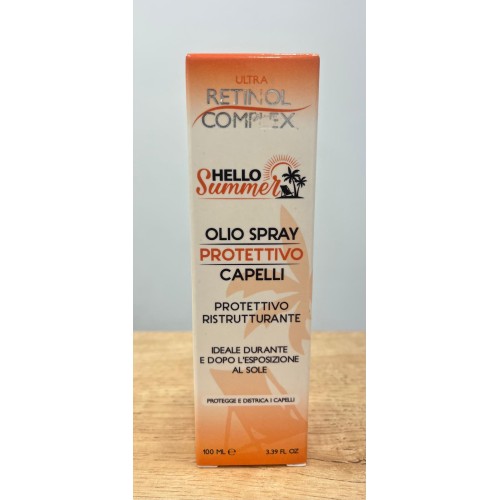 HELLO SUMMER: EL TRATAMIENTO QUE TU PELO NECESITA EL ULTRA RETINOL COMPLEX OLIO SPRAY PROTETTIVO CAPELLI ES EL COMPLEMENTO PERFECTO PARA TUS DÍAS DE VERANO. ESTE PRODUCTO NO SOLO PROTEGE LA FIBRA CAPILAR, SINO QUE TAMBIÉN ACTÚA COMO UN POTENTE REESTRUCTURANTE.