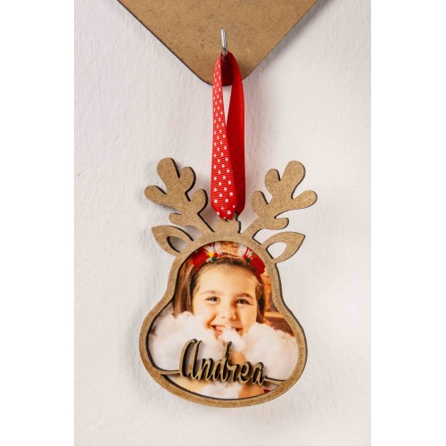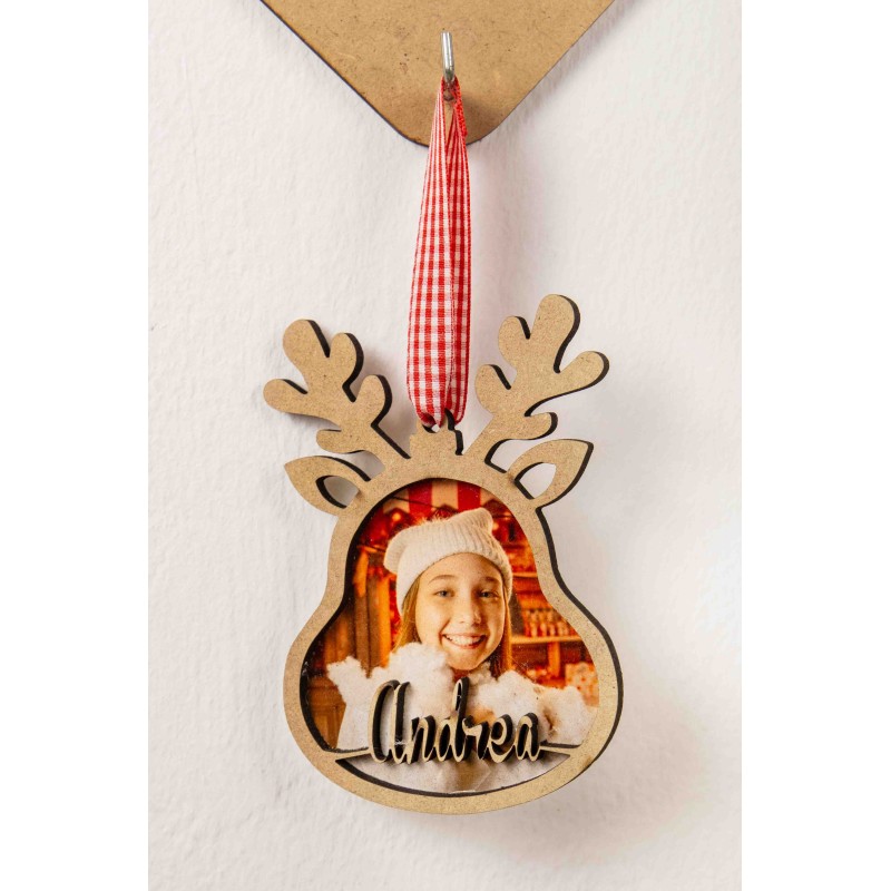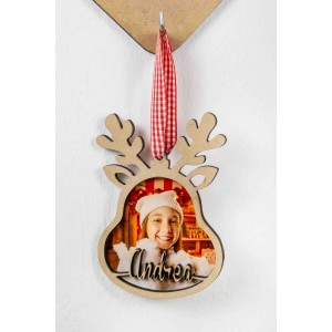 Bola de navidad personalizada con vuestras fotos. Está hecho en madera de DM y cortada a laser.