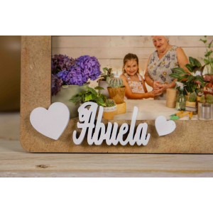 Un detalle emotivo y decorativo que conservará siempre con cariño. Fabricado en madera MDF de alta calidad, incluye la palabra “Abuela” en relieve con corazones decorativos blancos. Diseño horizontal elegante que combina con cualquier rincón del hogar.