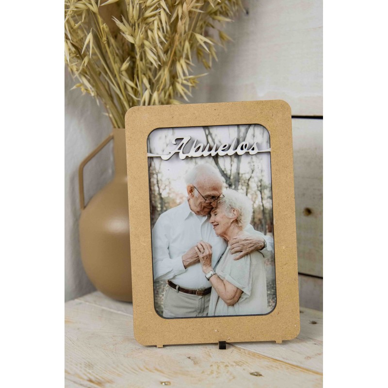 Marco de Fotos Personalizado “Abuelo” 10x15 cm – Regalo Original Marco de madera DM en formato vertical para fotografía de 10x15 cm con la palabra “Abuelo” en relieve en la parte superior.