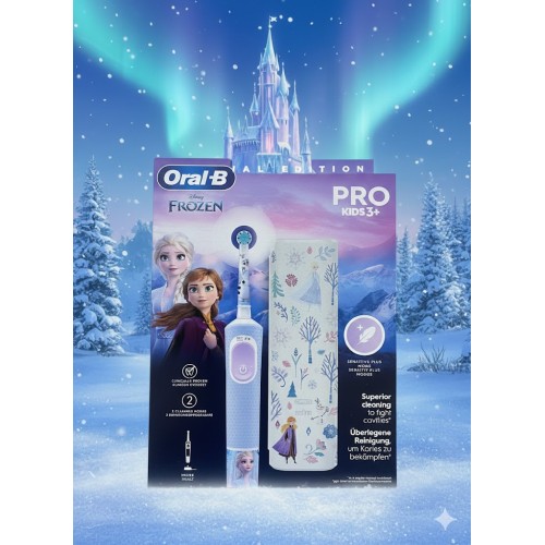 PRESENTAMOS EL ORAL-B PRO KIDS 3+ EDICIÓN ESPECIAL DISNEY FROZEN, EL CEPILLO ELÉCTRICO DISEÑADO PARA HACER QUE LA HIGIENE BUCAL SEA TAN DIVERTIDA COMO UN CUENTO DE HADAS. CON EL PODER DE ANNA Y ELSA, ESTE CEPILLO NO SOLO ENCANTA A LOS NIÑOS MAYORES DE 3 AÑOS, SINO QUE TAMBIÉN OFRECE LA LIMPIEZA CLÍNICAMENTE PROBADA EN LA QUE CONFIAMOS DEL CEPILLO ORAL-B PRO KIDS FROZEN ES LA HERRAMIENTA PERFECTA PARA ESTABLECER BUENOS HÁBITOS DESDE TEMPRANA EDAD. AYUDA A TUS HIJOS A ALCANZAR UNA LIMPIEZA EXCELENTE MIENTRAS SE DIVIERTEN CON SUS PERSONAJES FAVORITOS.