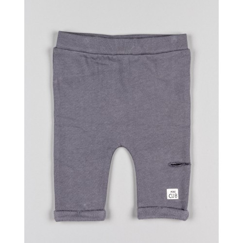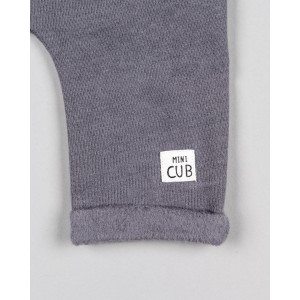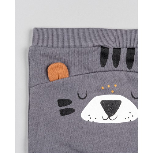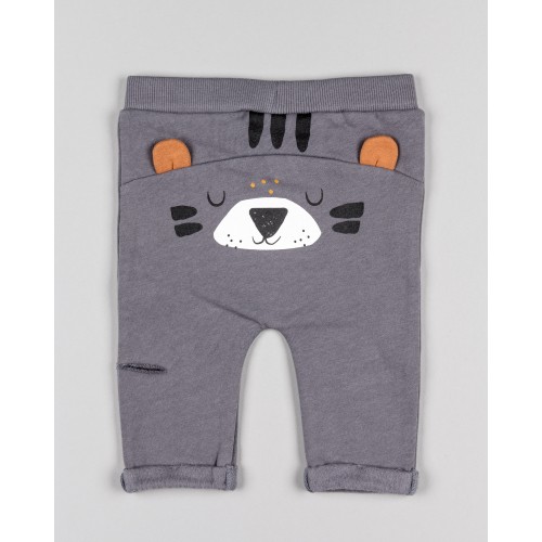 Pantalón largo para bebé niño, color gris oscuro con cara de osito en la parte trasera con orejitas, goma en la cintura, con cinta interior ajustadora con botones. Composición: algodón 100%