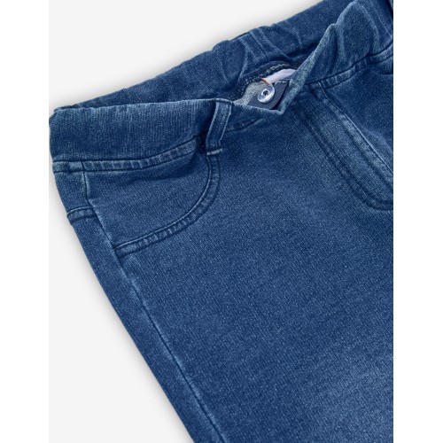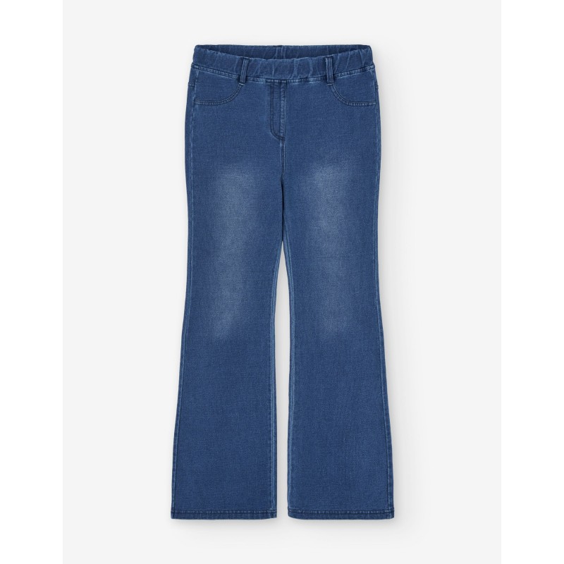 Legging pierna ancha para niña junior, color denim azul, trabillas en la cintura, 2 bolsillos simulados en la parte delantera, 2 bolsillos plastrón en la parte trasera, goma en la cintura, cinta interior ajustadora.