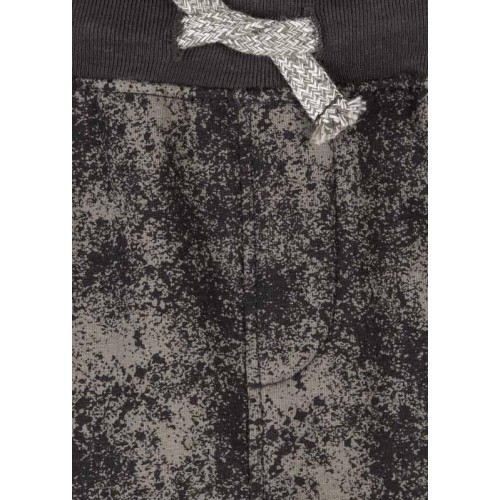 Pantalón estampado para niño infantil, de felpa y color topo, dos bolsillos laterales y uno en la parte trasera, cinta interior ajustadora con botones. Cortes en las piernas.