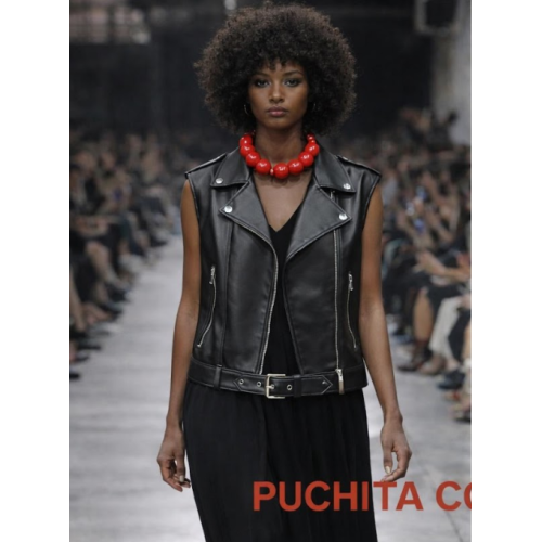 PUCHITA BY PO CHALECO BIKER EFECTO PIEL CON DETALLE TARTÁN. Pertenece a la colección capsula de Puchita by pó.