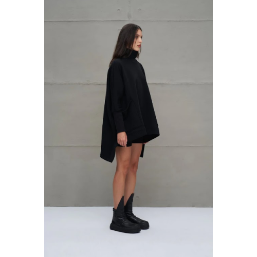 Sudadera extragrande con cuello alto, forro polar, bolsillos laterales extragrandes y dobladillo alto-bajo. Composición: %60 Algodón %40 Pes