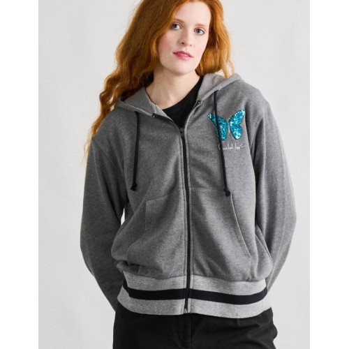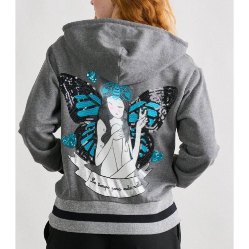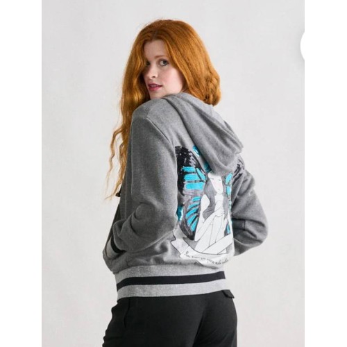 Maxi print en espalda y print delantero con aplicación de lentejuelas.