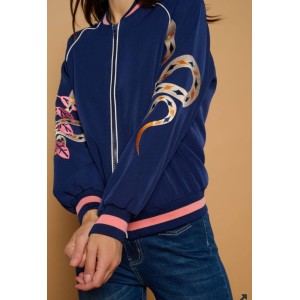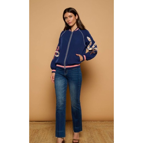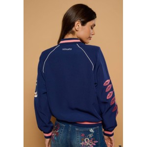 Chaqueta estilo bomber de cuello redondo y manga larga.