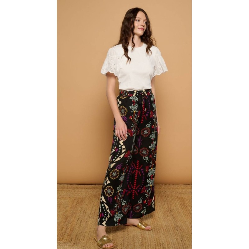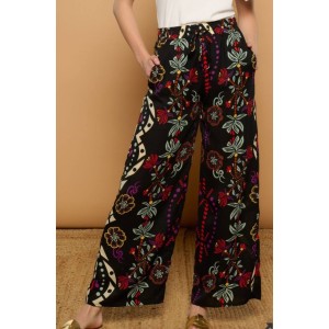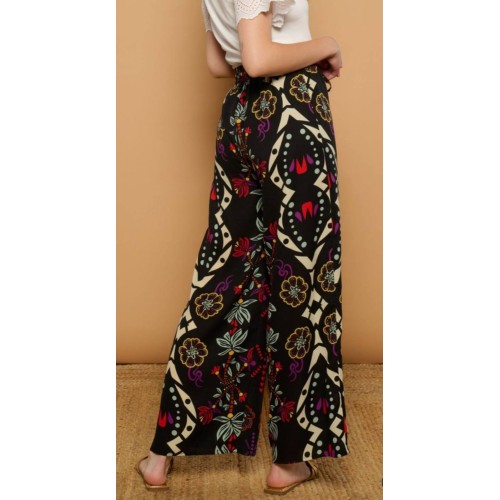 Pantalón de fondo negro, de tejido fluido.