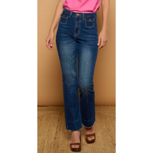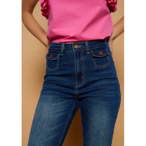 Detalle de bolsillos frontales  con bolsillo de plastón y botones.