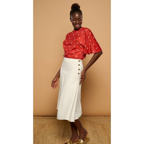 Falda midi de tiro alto y silueta evasé.